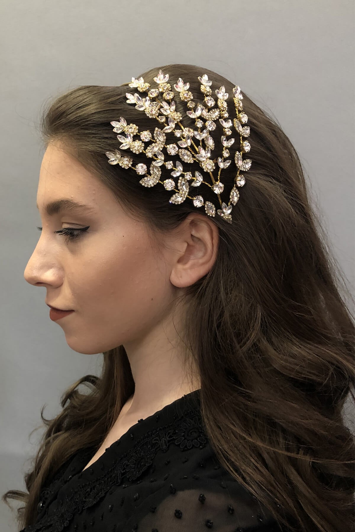 Albireo Sarı Renk Çift Taraflı Gelin Tacı (TAC-376)