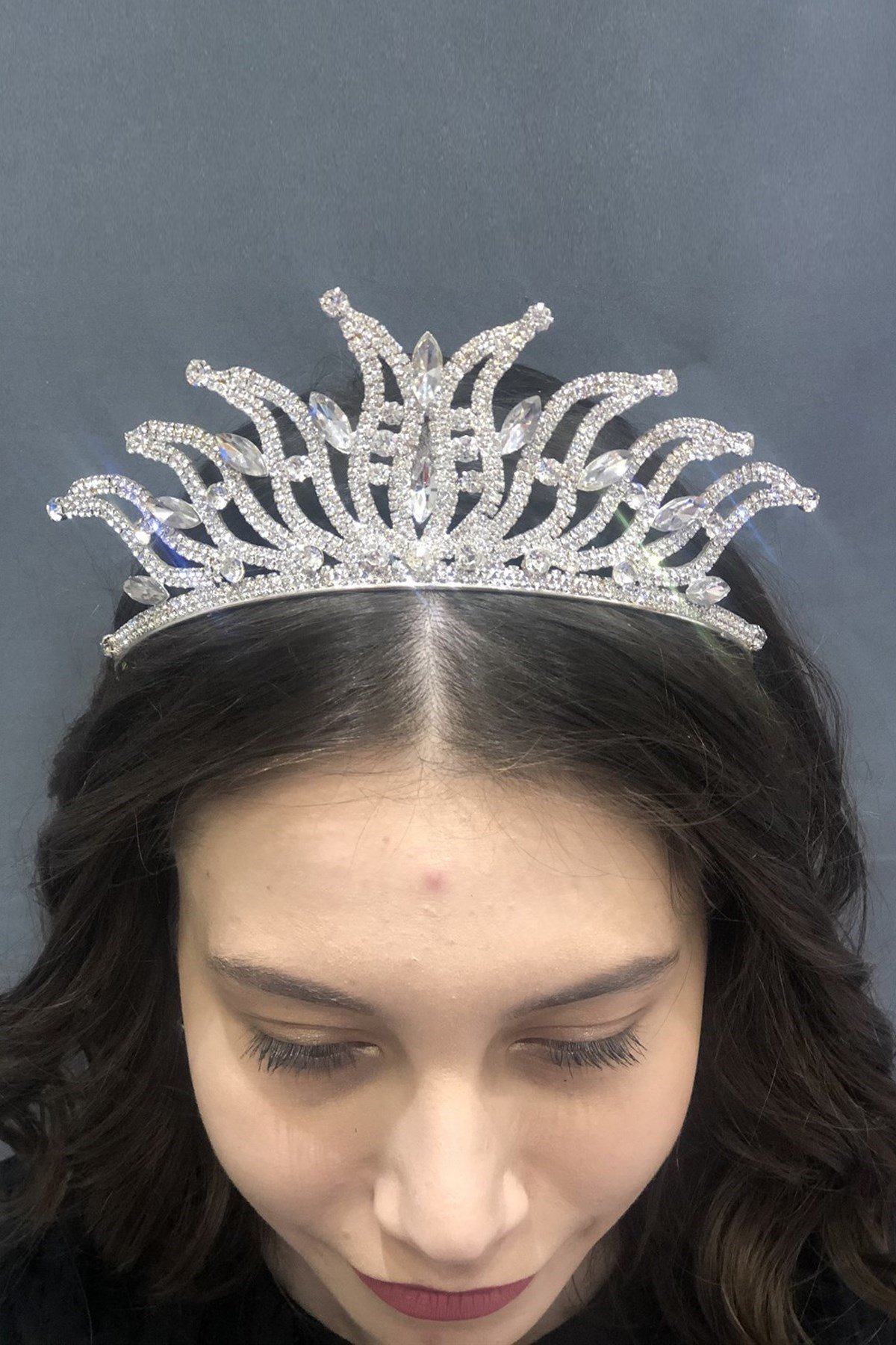 Altın Rengi Dalgalı Taşlı Gelin Tacı