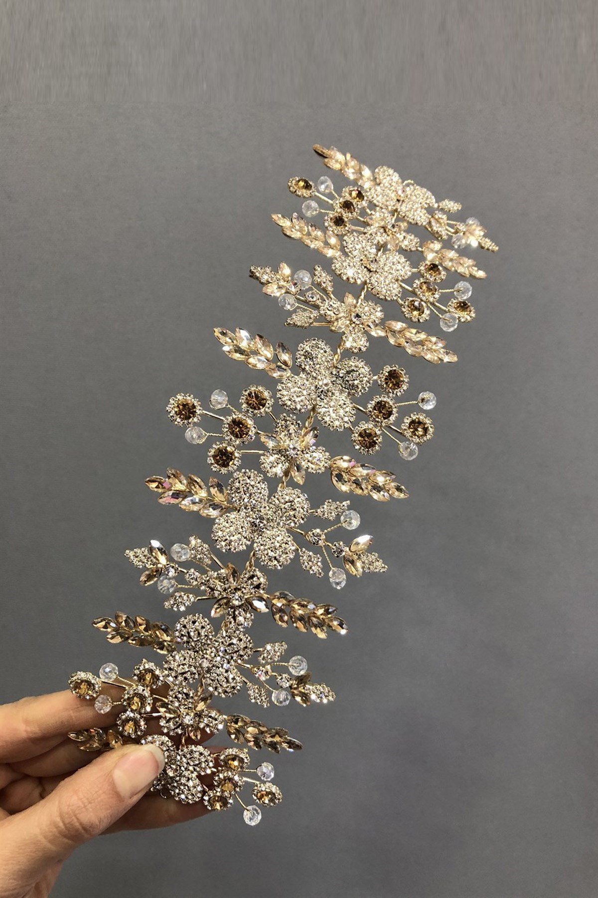Bal Rengi Taşlı Hera Saç Türban Aksesuarı (TAC-404)