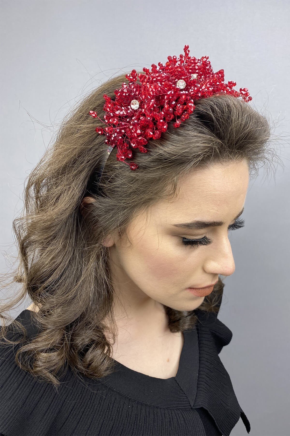 Bellatrix Bordo Kristal Taşlı Gelin ve Kına Tacı