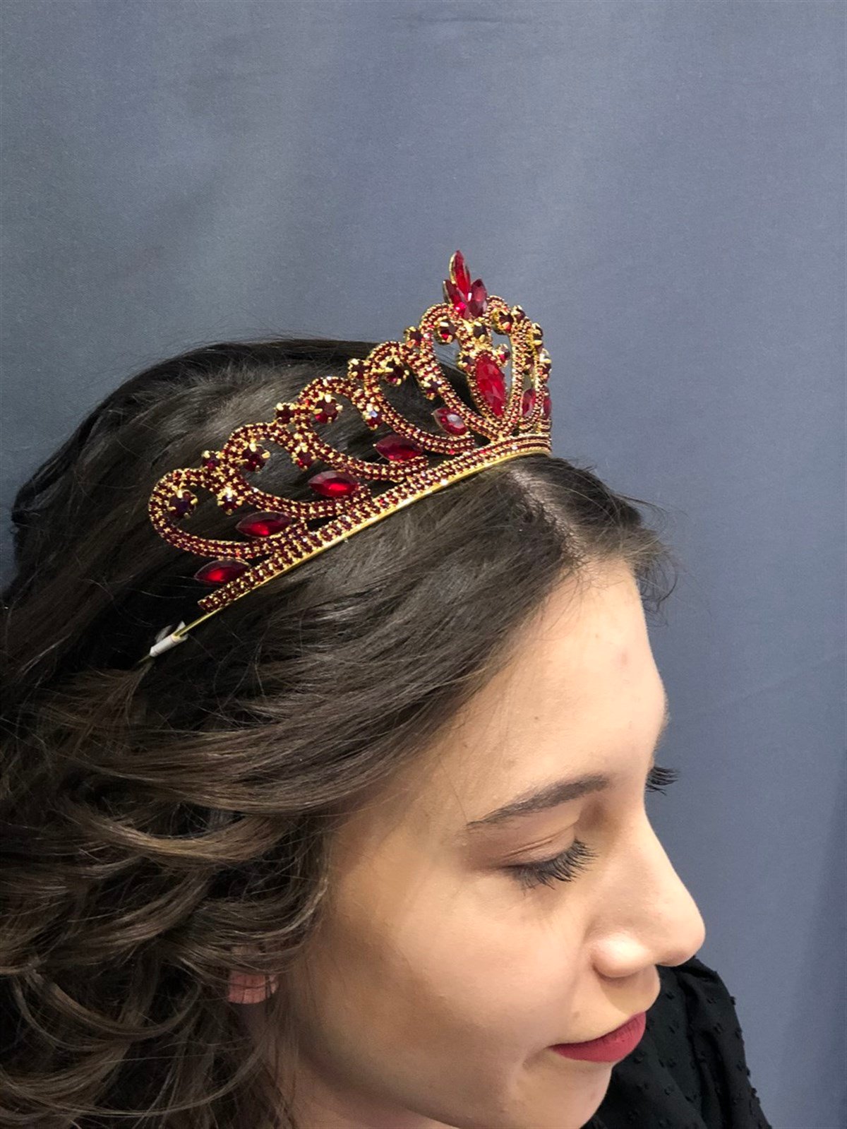Bordo Kristal Taş Gold Detaylı Kına Tacı (TAC-21301)