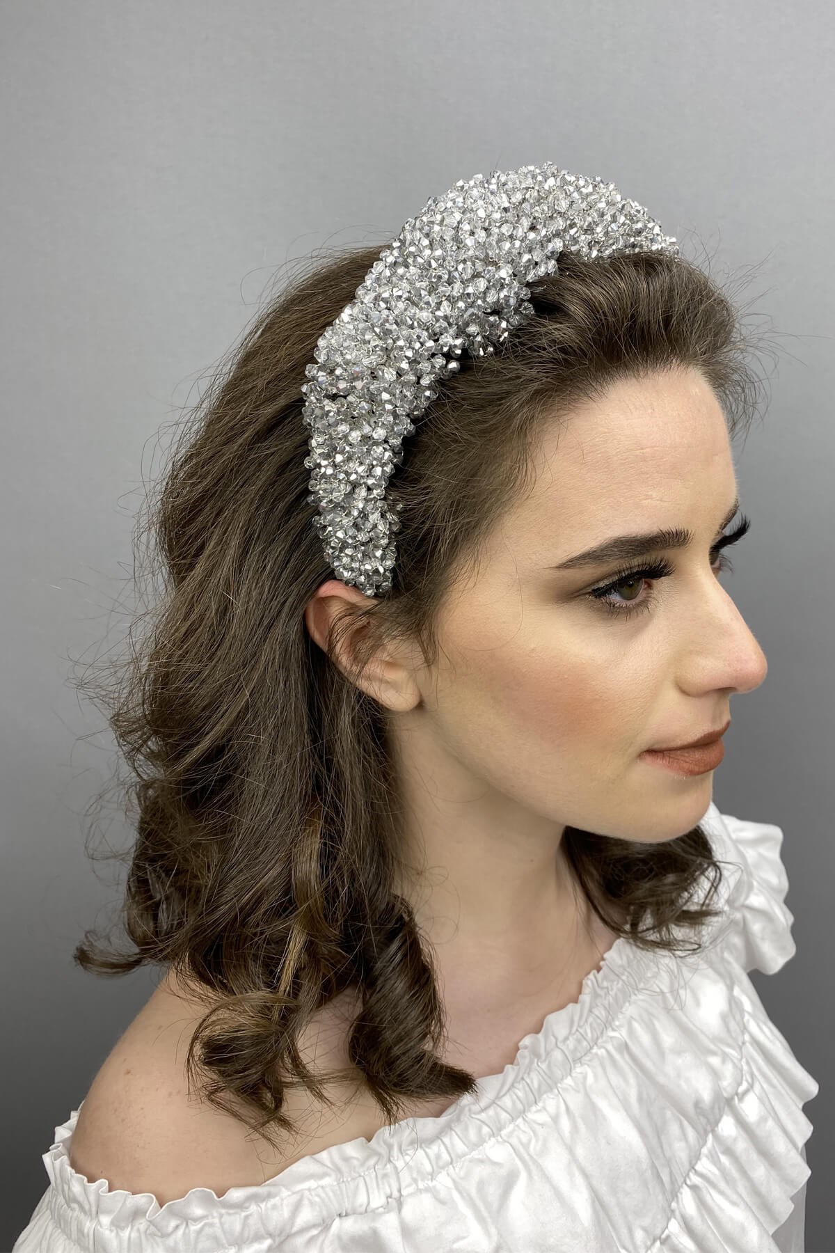 Gri Polaris Kristal Taşlı Gelin ve Kına Tacı