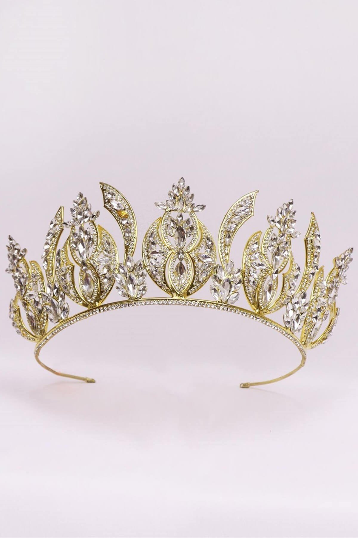 Gümüş Kristal Taş Detaylı Sarı Gelin Tacı (TAC-119)