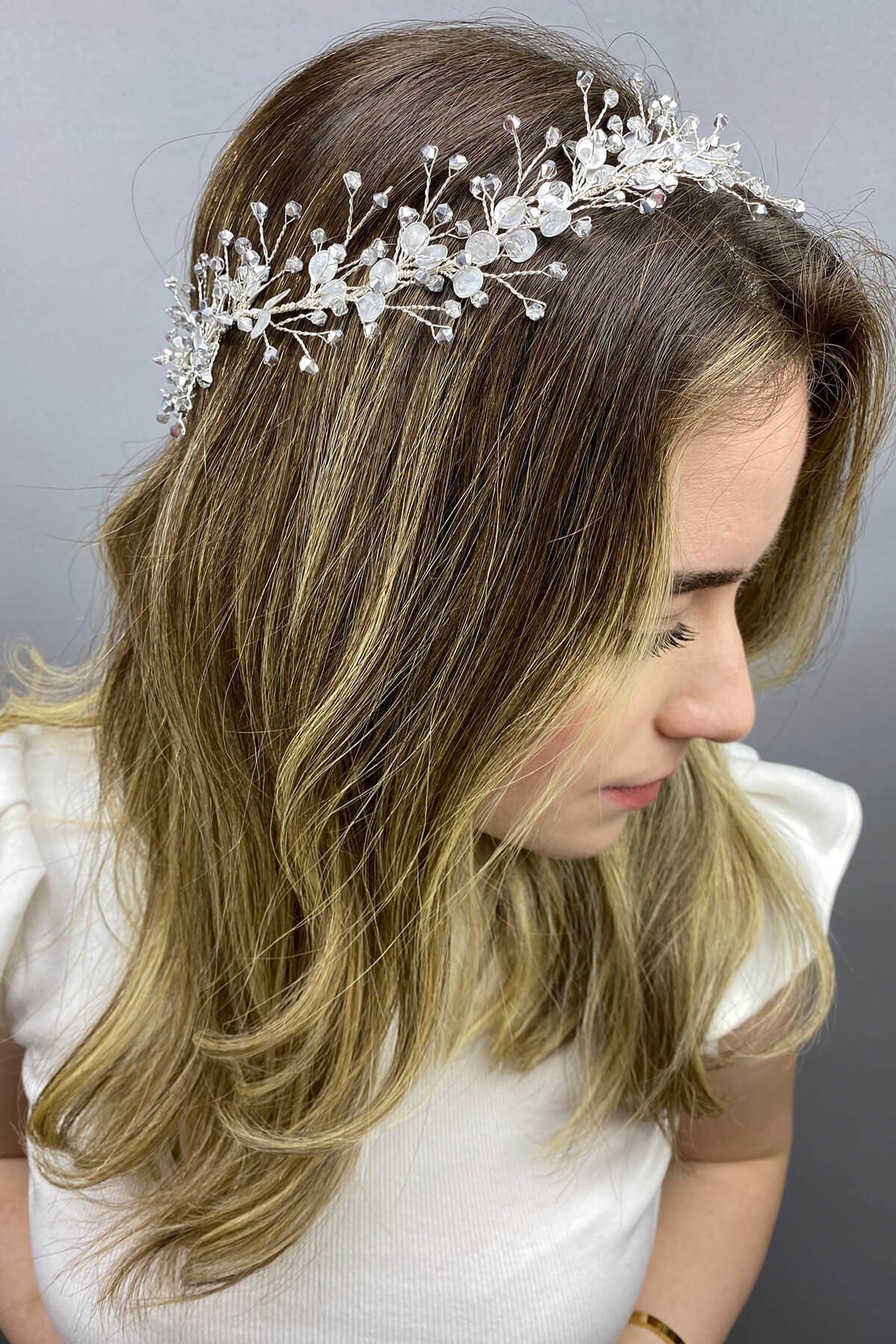Gümüş Rengi Mineli Bahar Dalı Saç Aksesuarı (KNTC142)