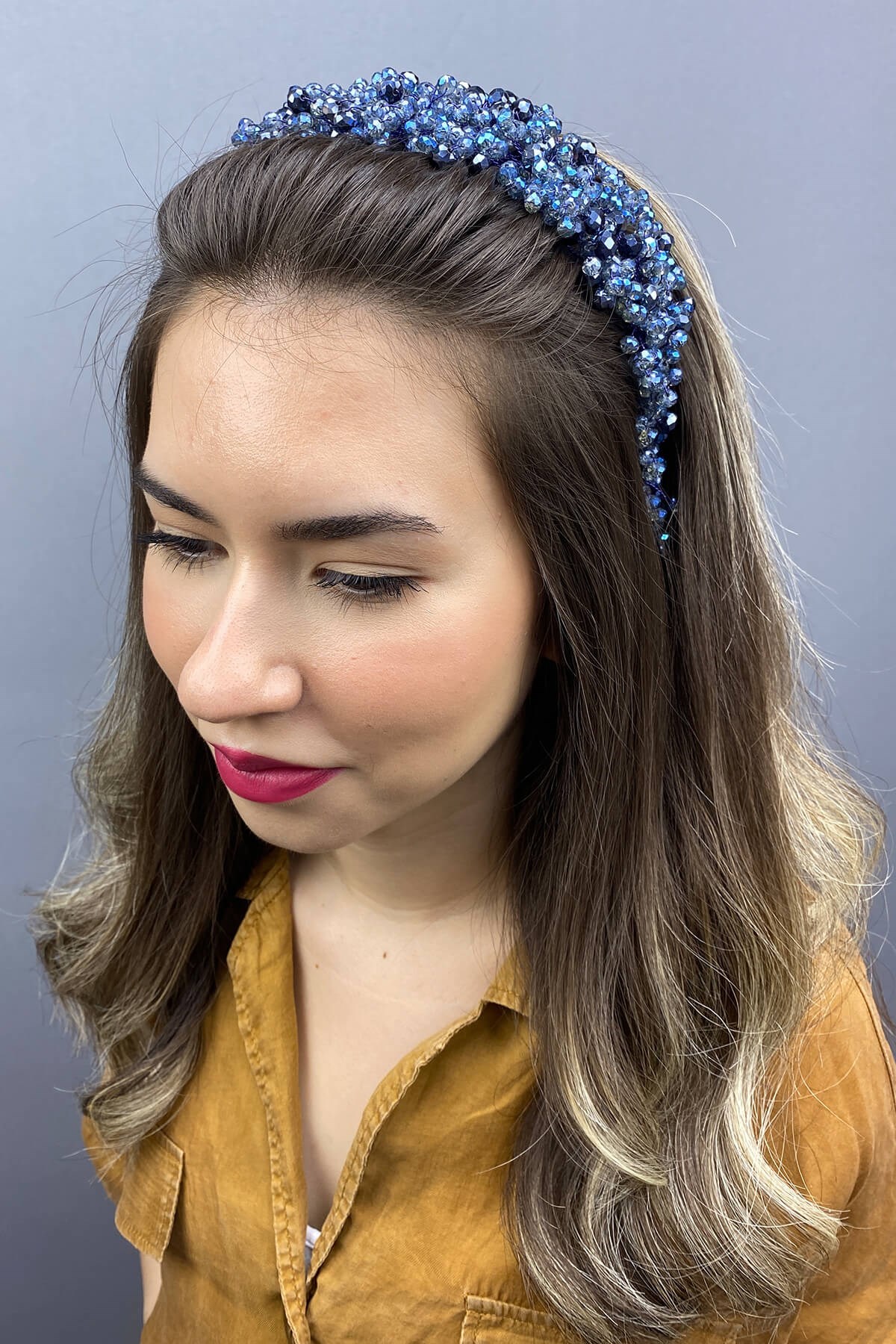 İndigo Mavi Asya Kristalli Gelin Saç Aksesuarı (KNTC230)