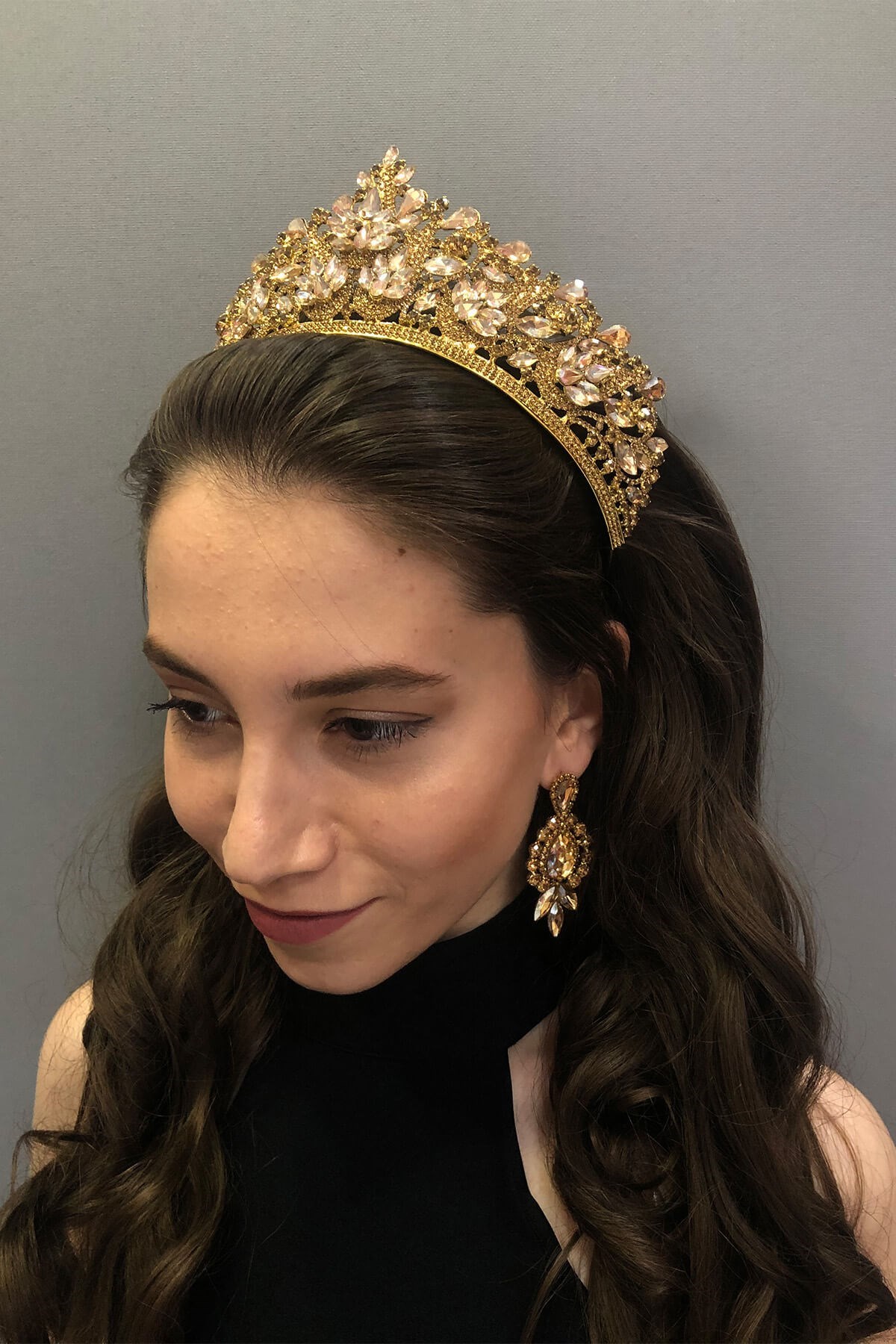Keid Model Bal Rengi Gelin Kına Tacı ve Küpesi (TAC-342)