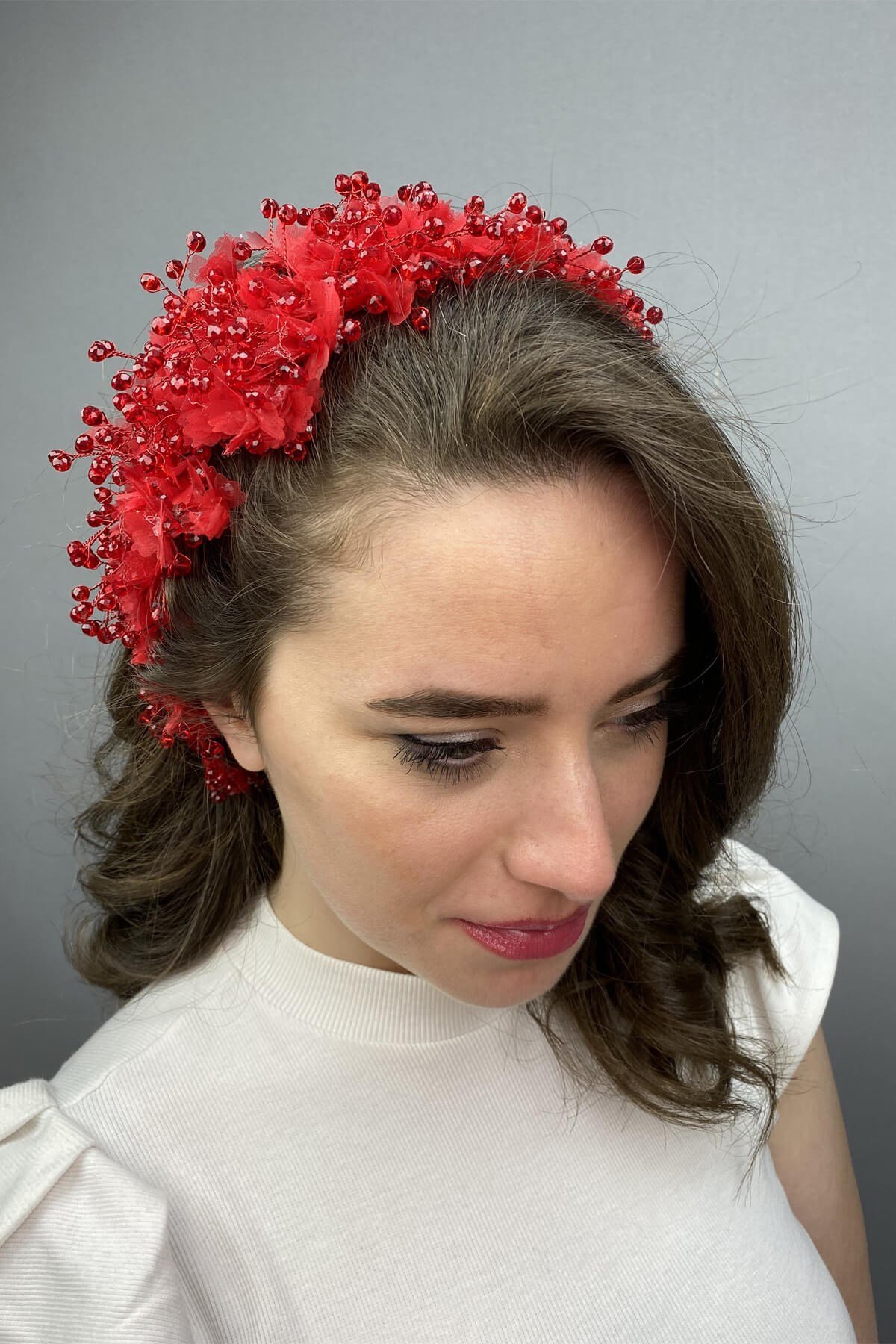 Kırmızı Agena Kristal Taşlı Kına ve Gelin Tacı