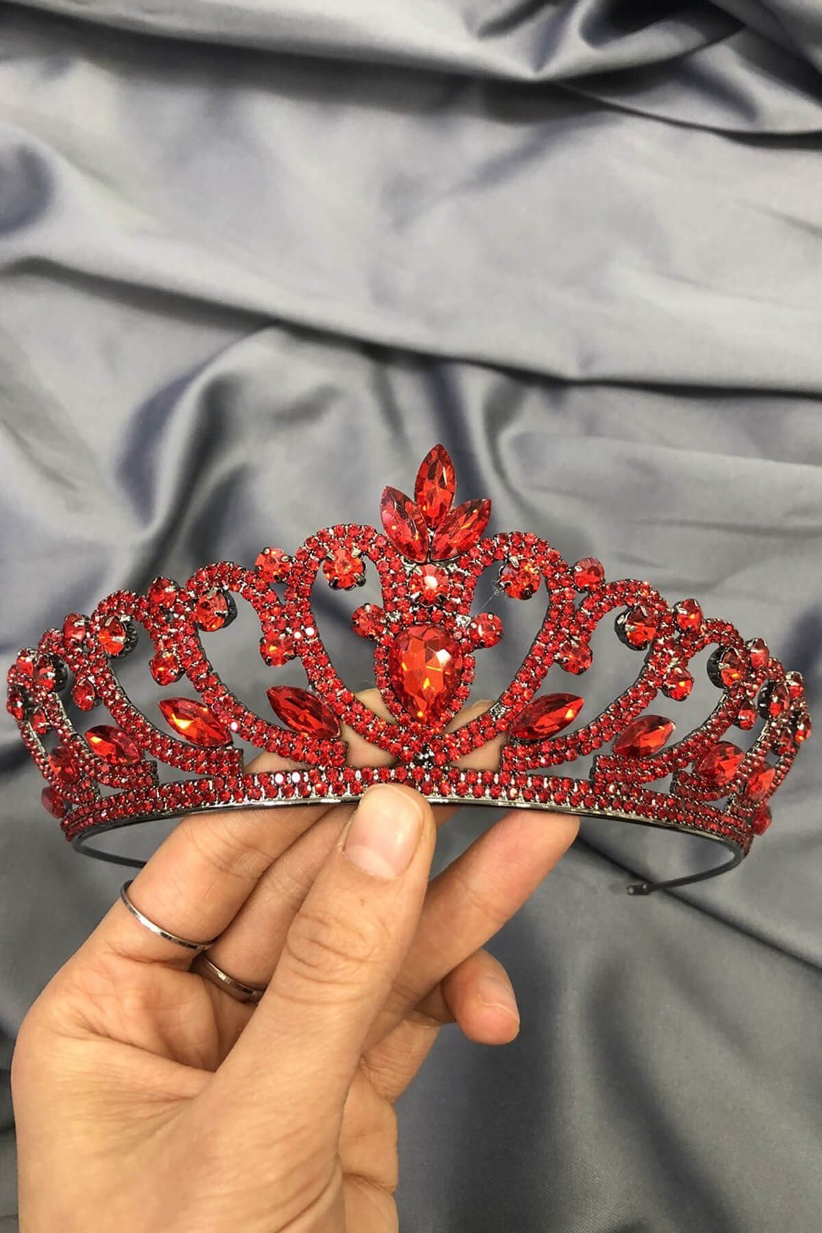 Kırmızı Cam Krıstallı Kına Ve Gelin Tacı (TAC-16001)