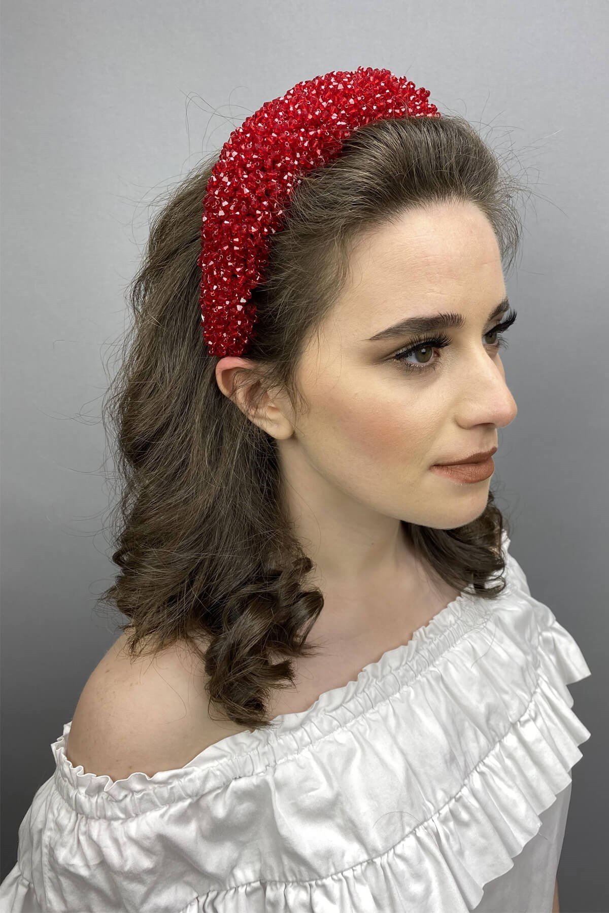 Kırmızı Polaris Kristal Taşlı Gelin ve Kına Tacı