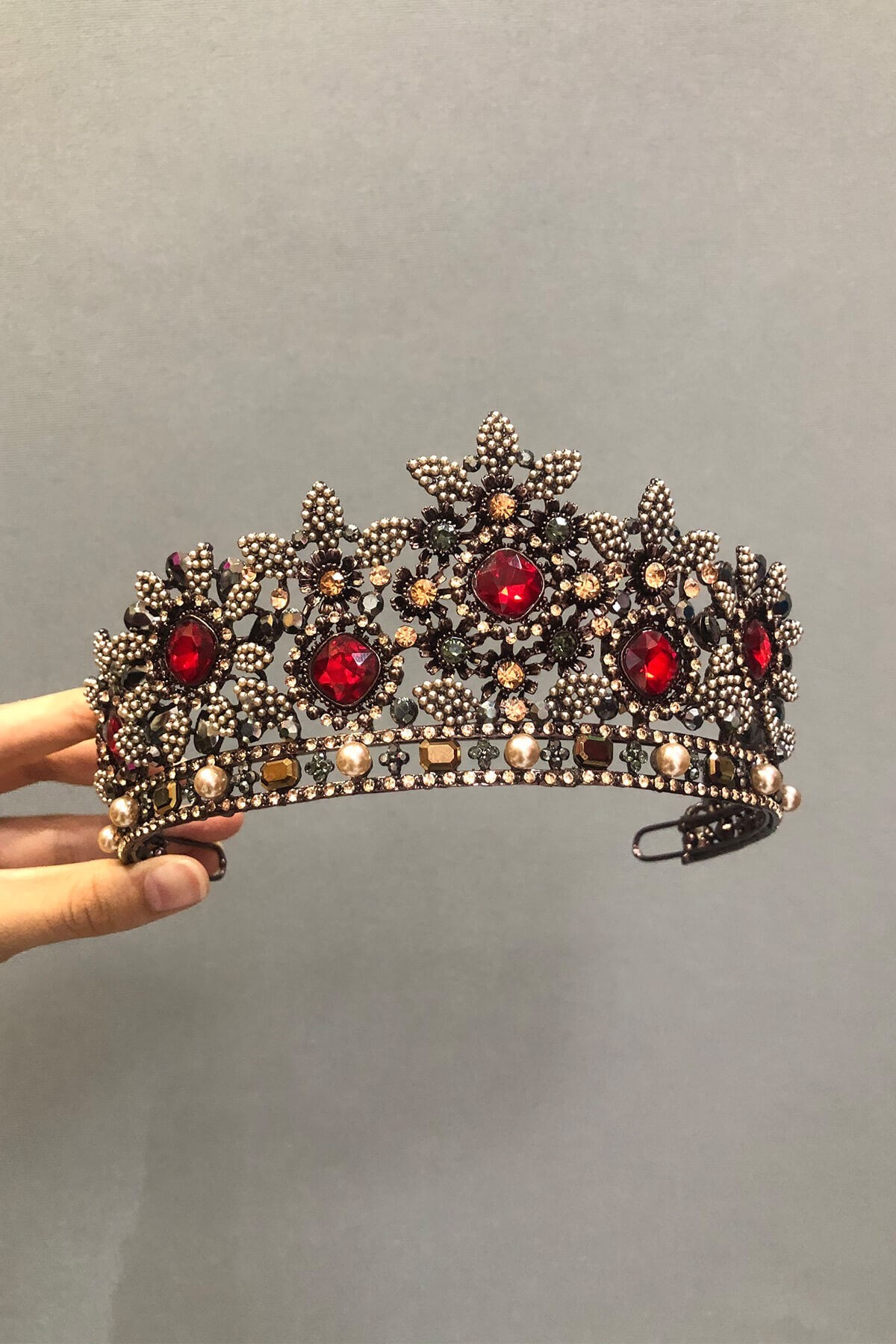 Kleeia Model Bordo Gelin Kına Tacı ve Küpesi (TAC-348)
