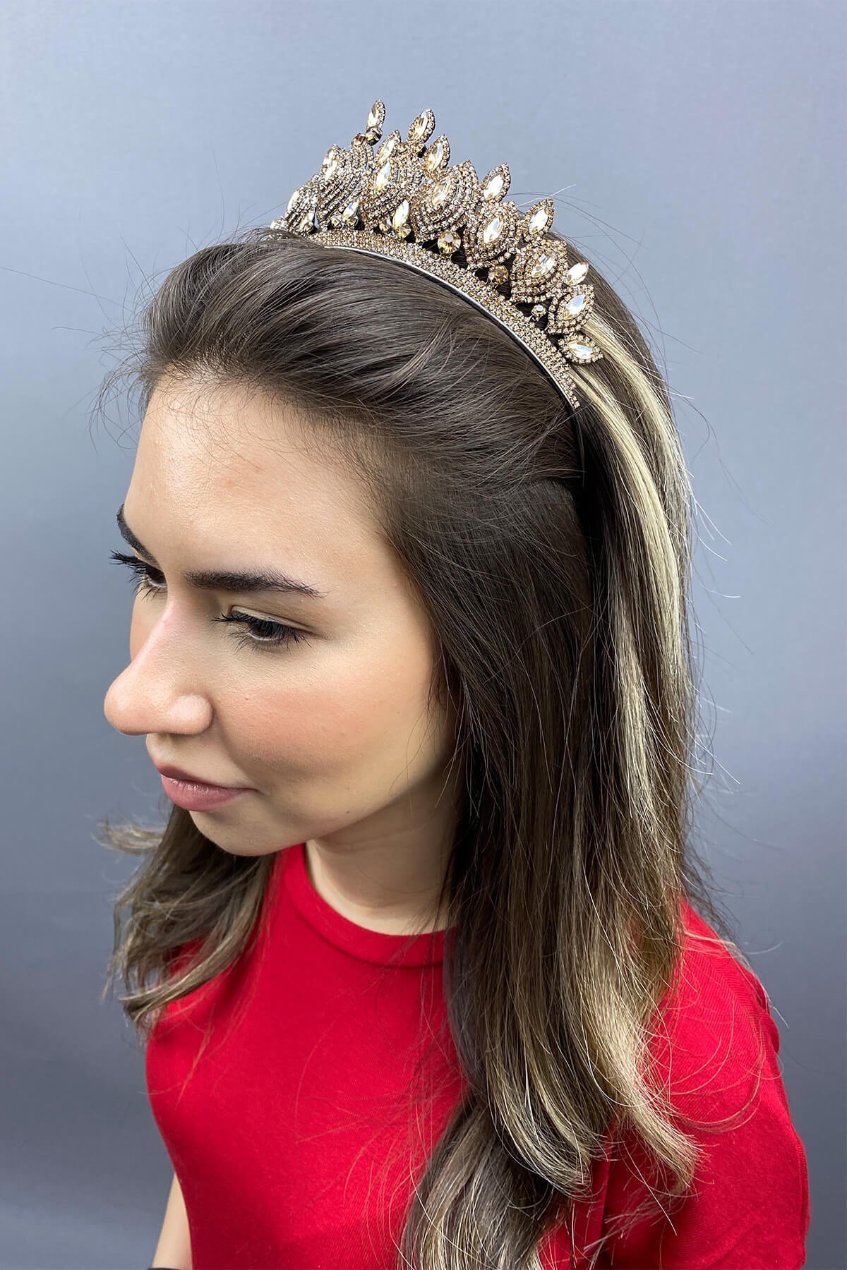 Koyu Bal Rengi Hera Model Gelin Kına Tacı