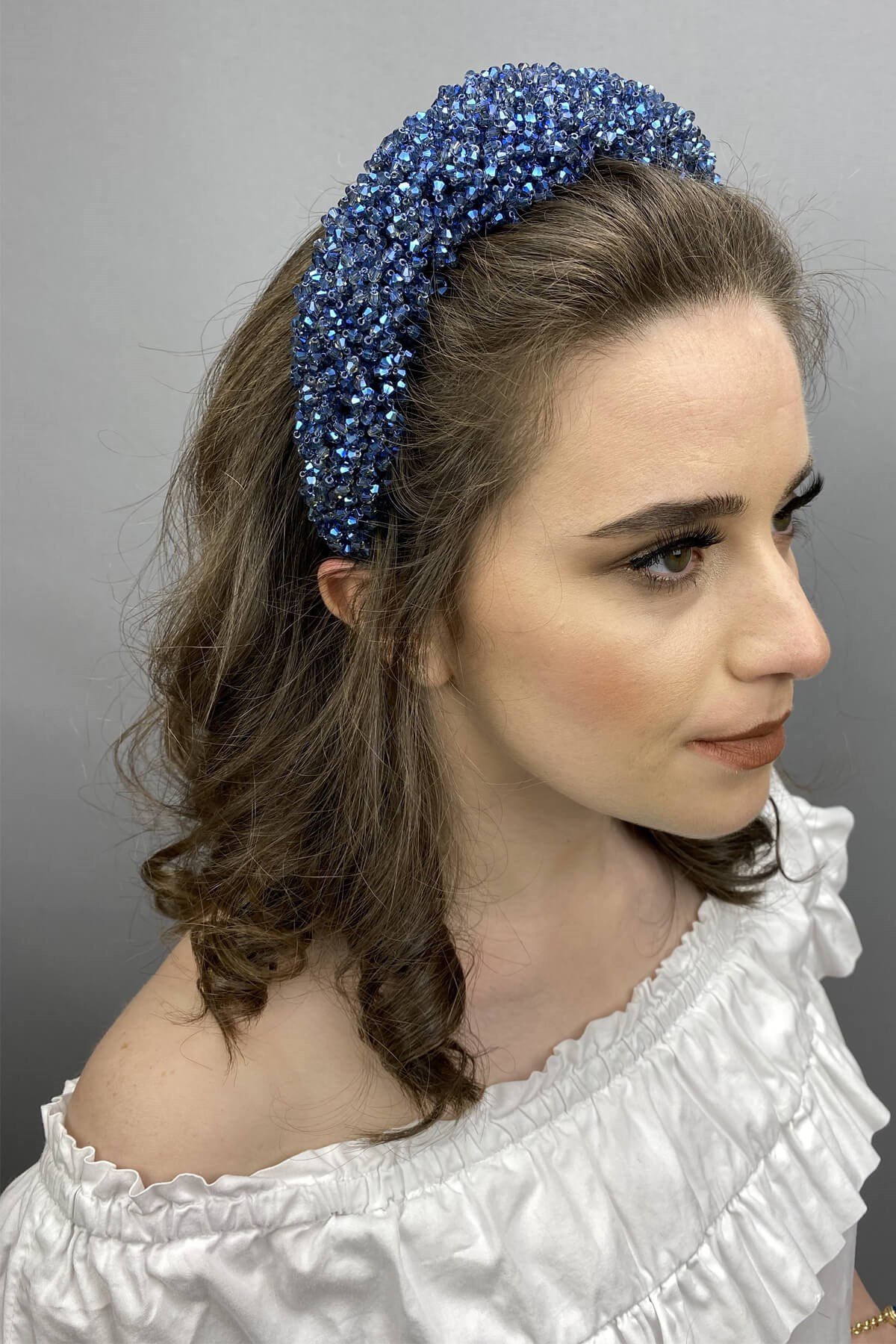 Lacivert Polaris Kristal Taşlı Gelin ve Kına Tacı