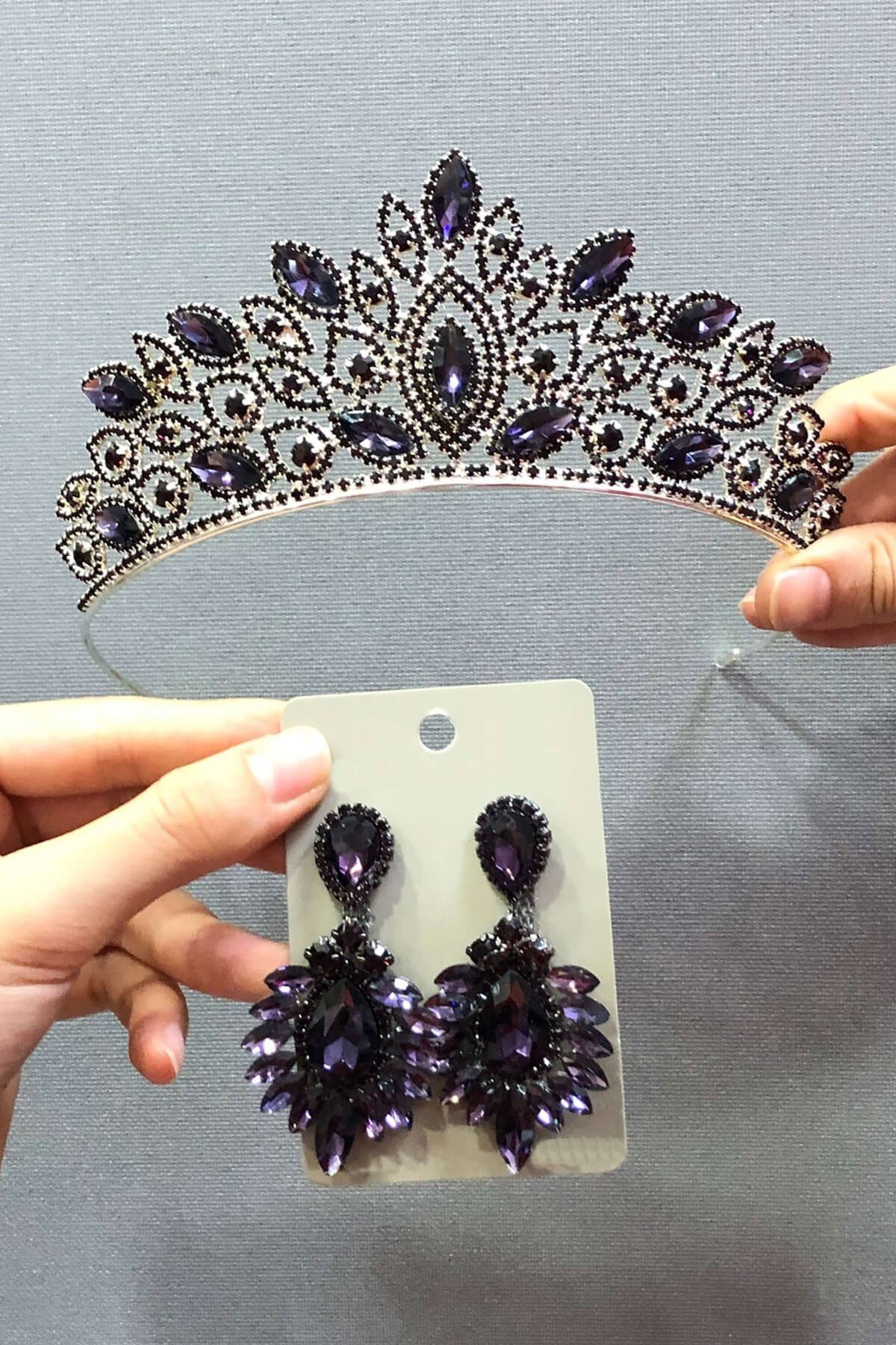Mor Renk Kına Tacı ve Küpe Takım (TAC-165)