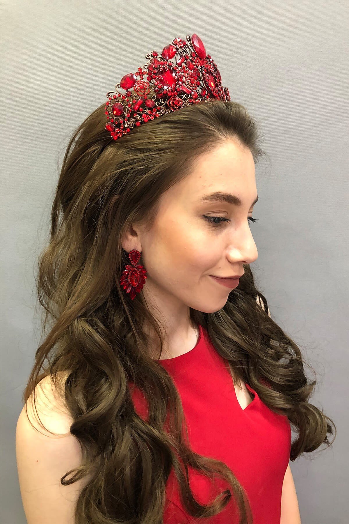 Rana Model Kırmızı Gelin Kına Tacı ve Küpesi (TAC-321)