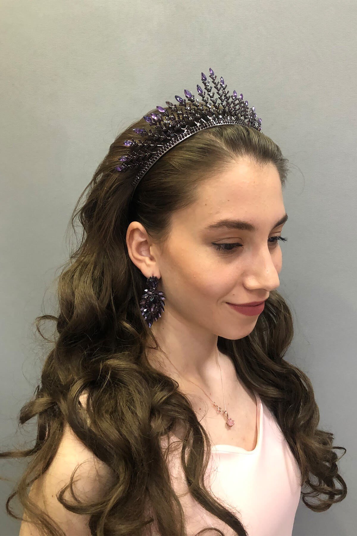 Sadalba Model Mor Gelin Kına Tacı ve Küpesi (TAC-356)