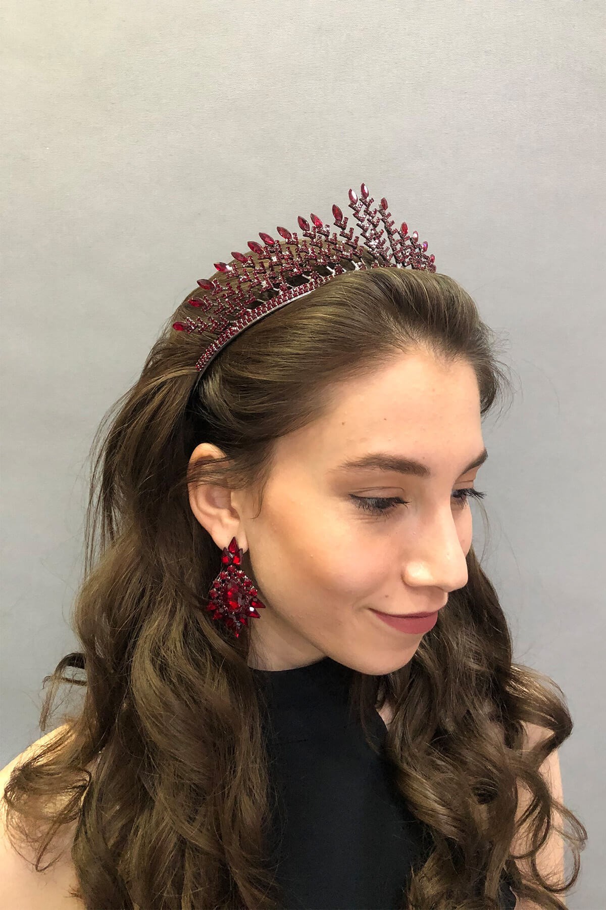 Sarir Model Bordo Gelin Kına Tacı ve Küpesi (TAC-331)