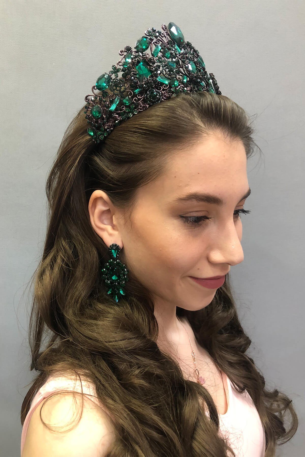 Subra Model Yeşil Gelin Kına Tacı ve Küpesi (TAC-350)