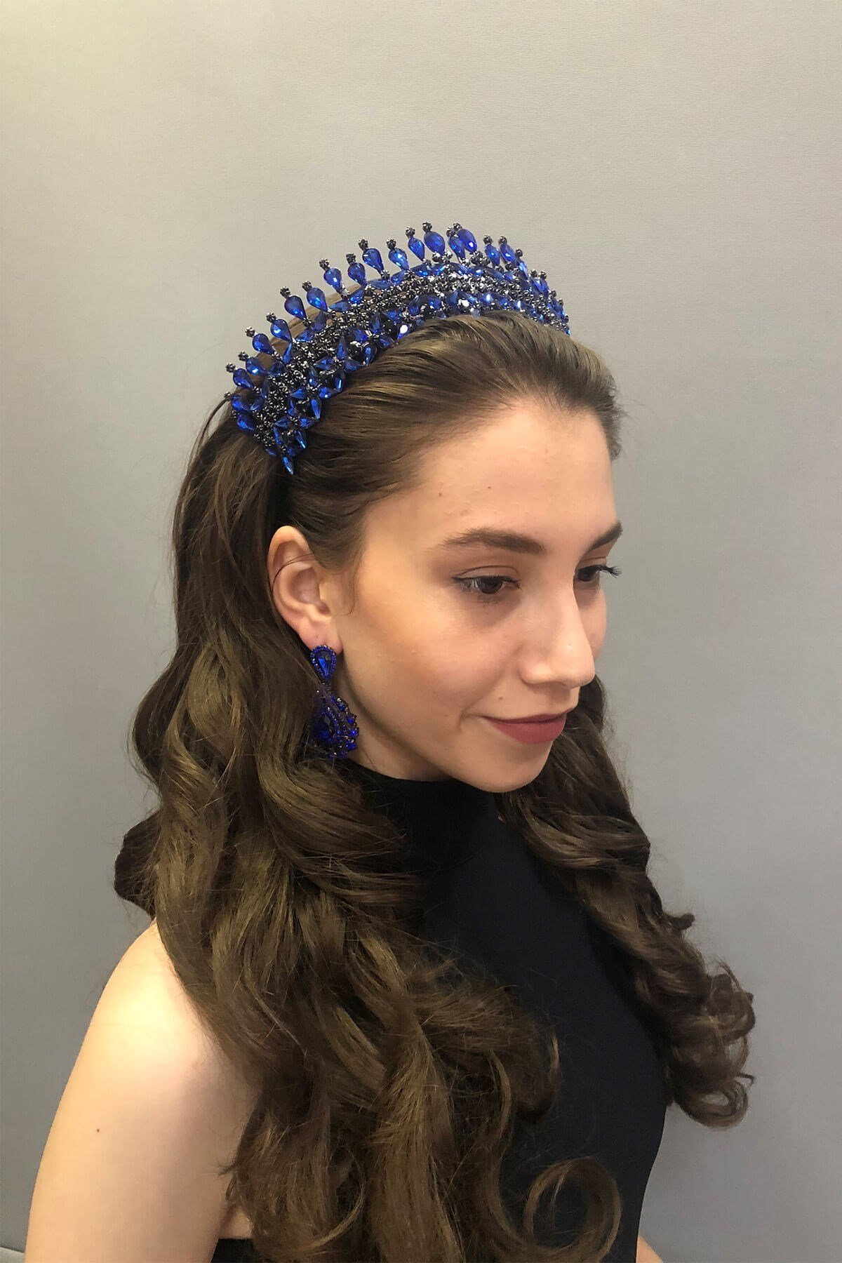 Sultan Model Mavi Gelin Kına Tacı ve Küpesi (TAC-344)