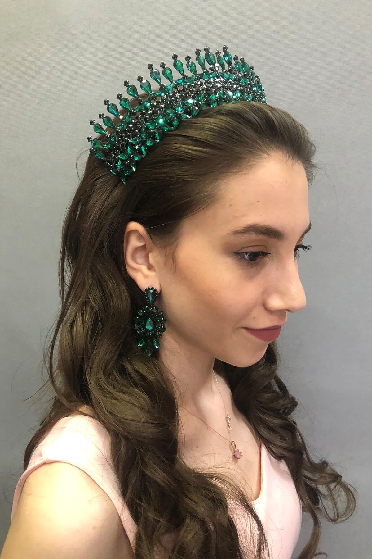 Sultan Model Yeşil Gelin Kına Tacı ve Küpesi (TAC-349)