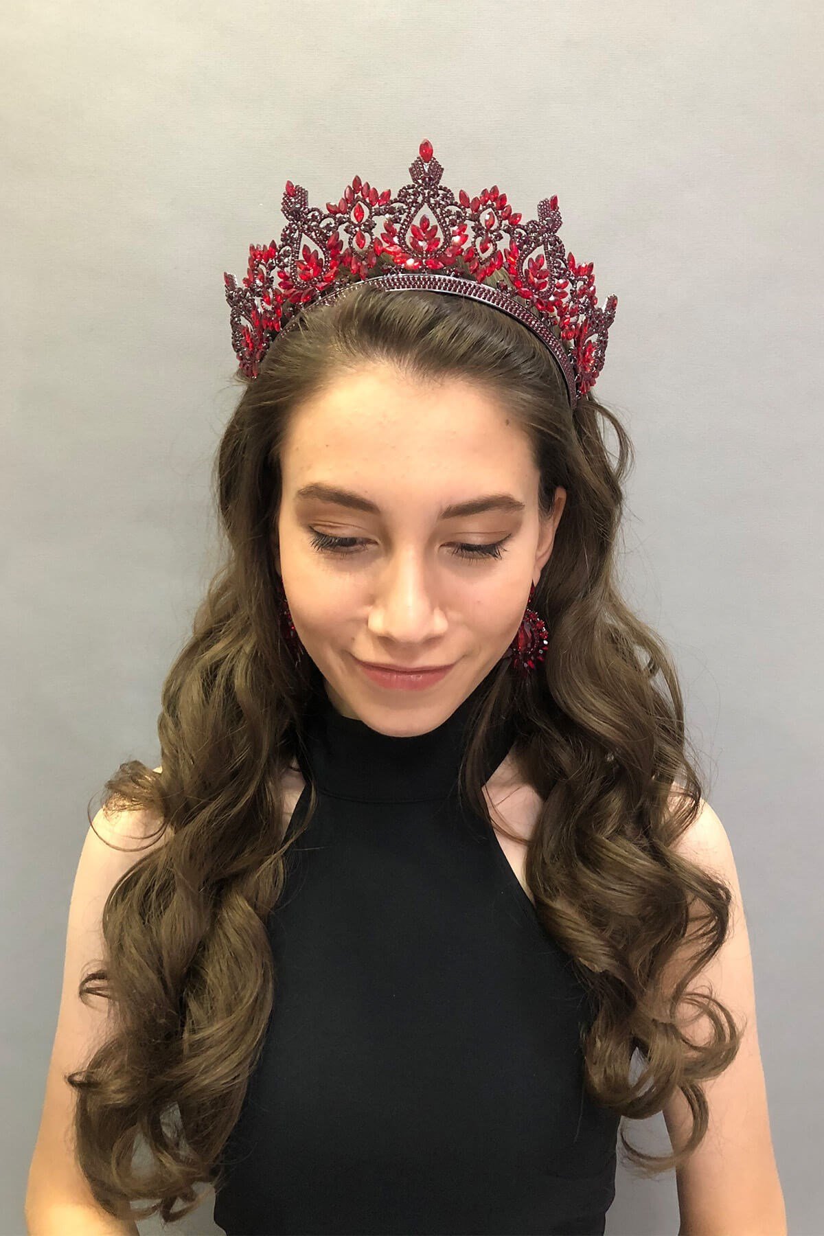 Vega Model Bordo Gelin Kına Tacı ve Küpesi (TAC-328)