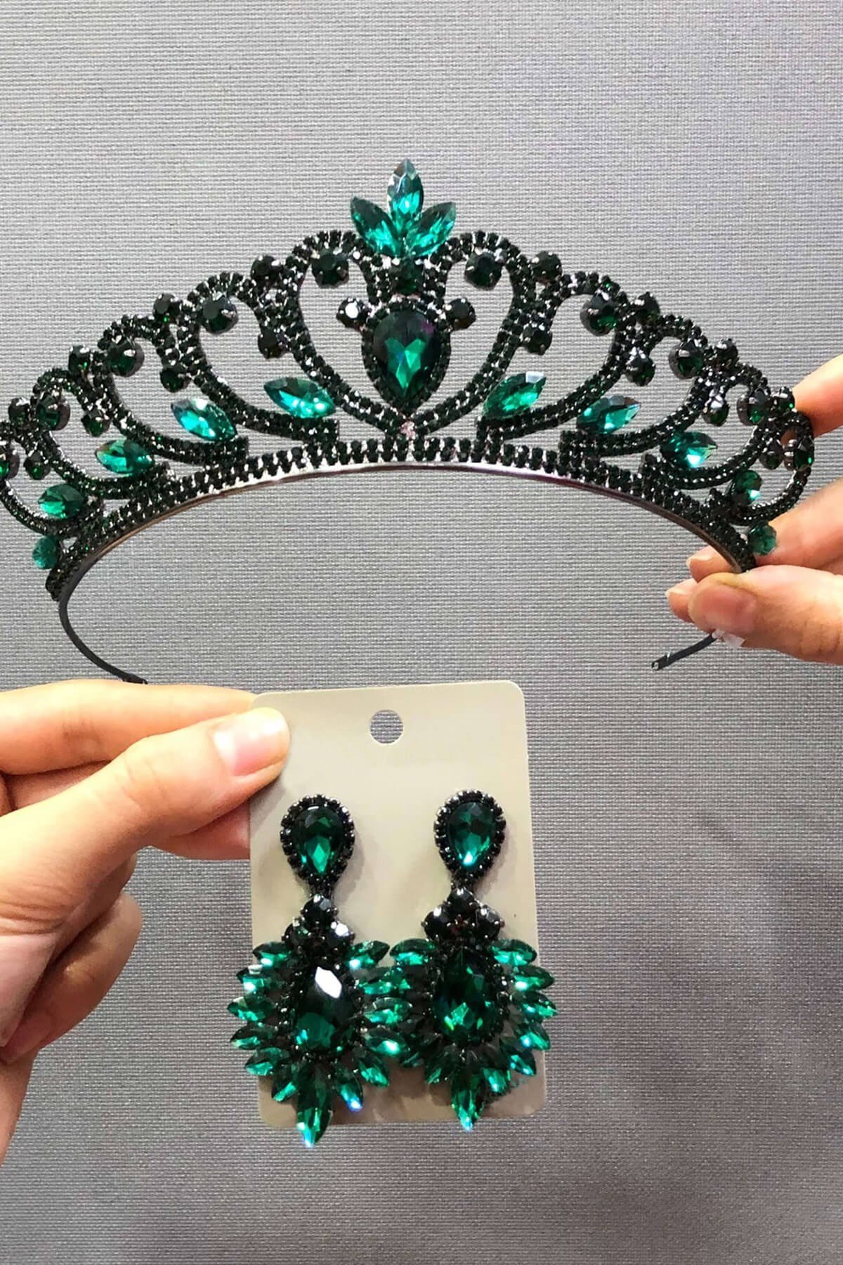 Antrasit Kaplama Model Kararma Yapmaz 1. Kalite Cam Krıstal Taşlarla Yapılmış Taç Modelidir. 1 .Çift Küpe İle Takım Olarak Satışı Yapılmaktadır.