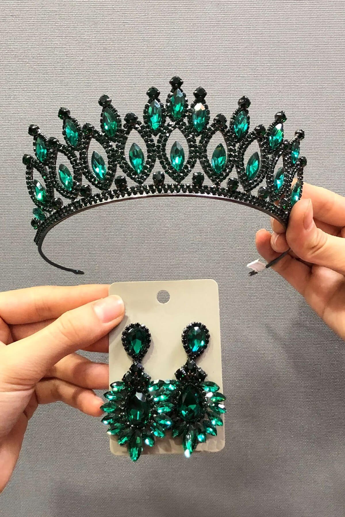 Yeşil Renk Kına Tacı ve Küpe Seti (TAC-415)