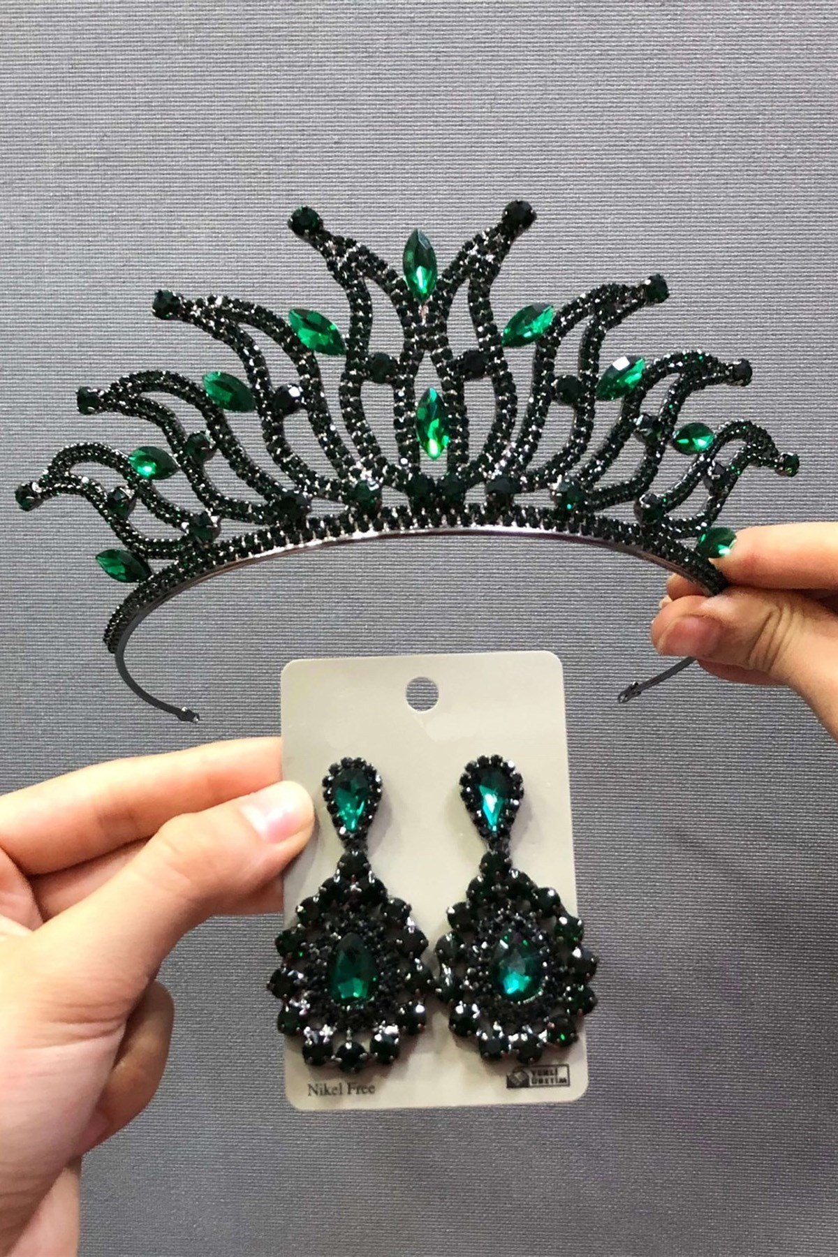 Yeşil Renk Kına Tacı ve Küpe Takım (TAC-161)